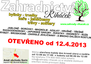 20.5. POZOR změna PRACOVNÍ DOBY: od pondělí 20. května jsme rozšířili pracovní dobu v zahradnictví. A to na každý den kromě úterý a neděle od 09:00 do 17:00 v sobotu od 8:00 do 12:00.